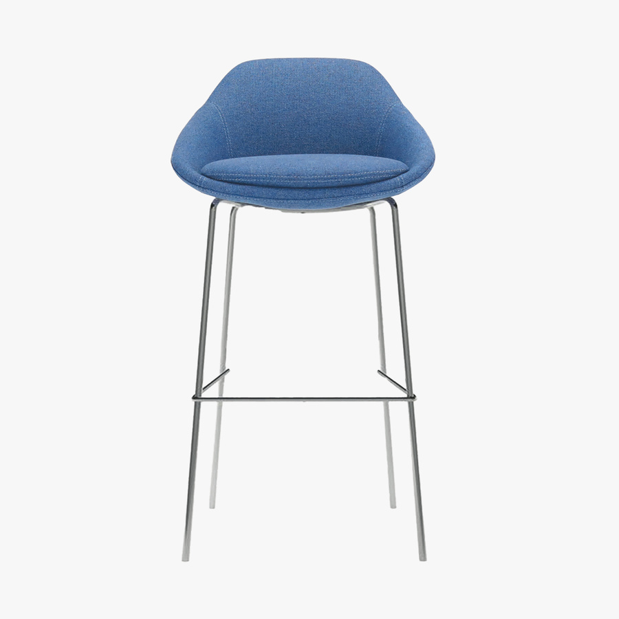The Ovo stool brings the collection's signature comfort to a higher level. It features a supportive mid-rise back and an integrated footrest on a four-legged base. For a custom look, choose a two-tone upholstery option.