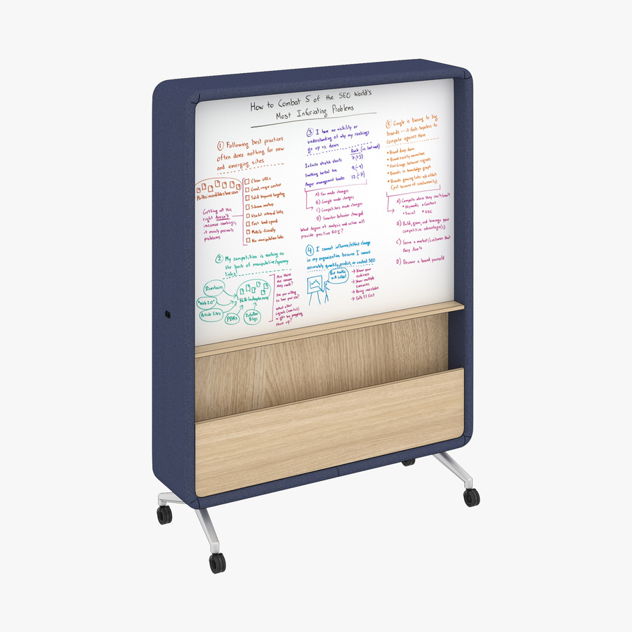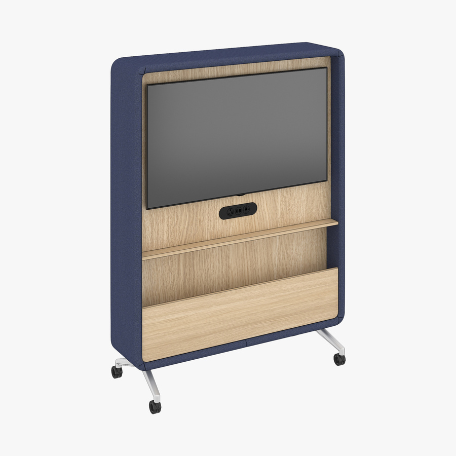 Mounted on mobile castors, it glides effortlessly to any location. With a simple rotation, it transforms from a whiteboard into a TV display. The upholstered frame also enhances room acoustics, ensuring focus and clarity.