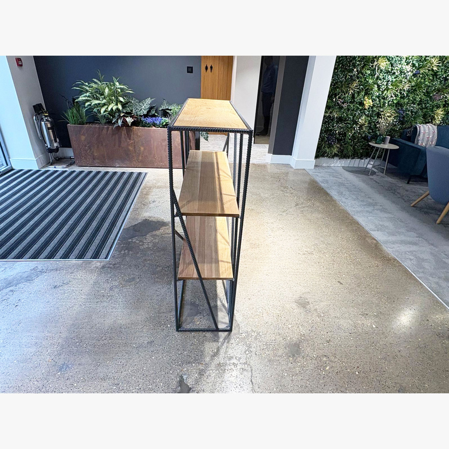 The Frovi Foundry 120 Shelves comes with a Natural Oak Finish and grey frame.