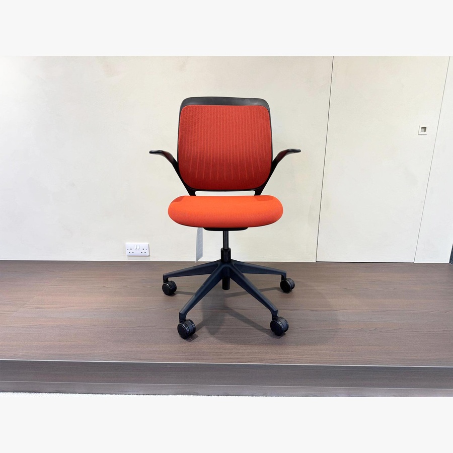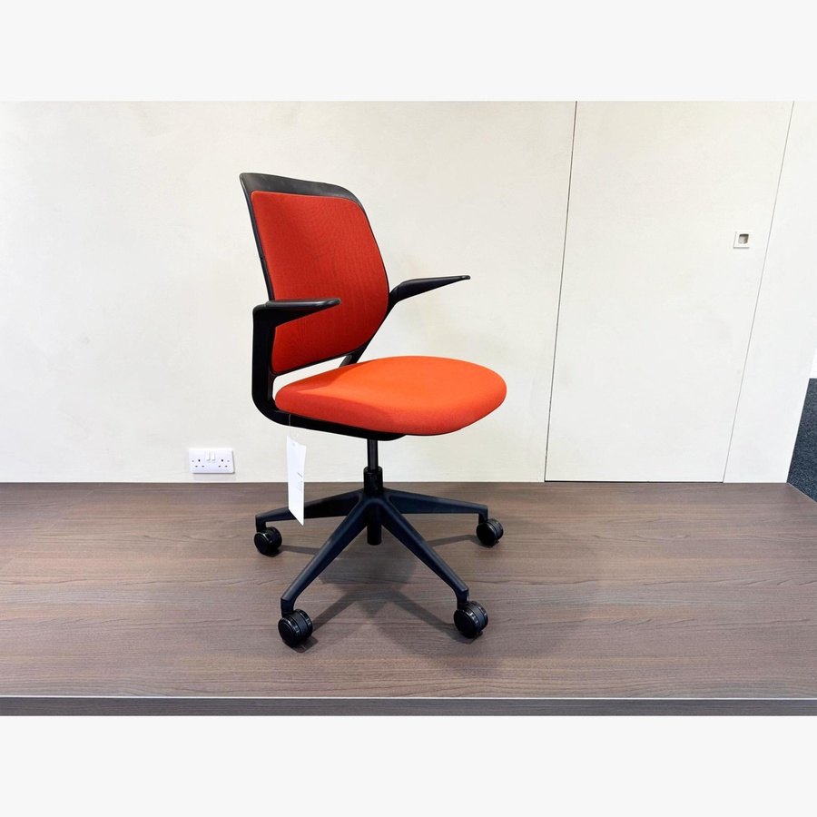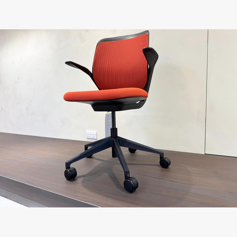 The Steelcase Cobi Office Chair comes with orange upholstery and black base.
