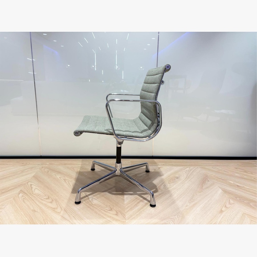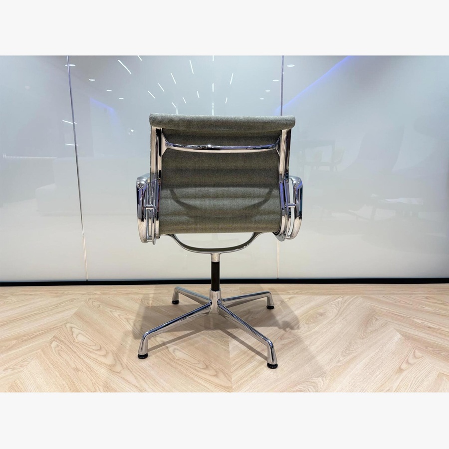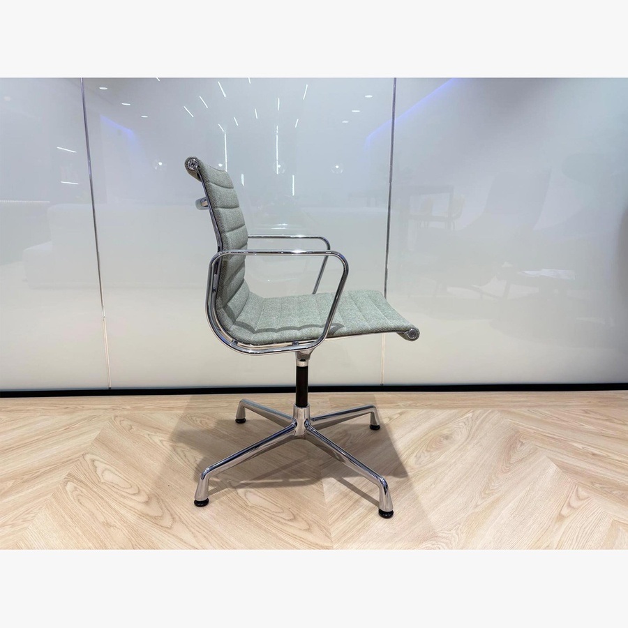 The Vitra EA108 Meeting Chair comes with green upholstery and polished frame.