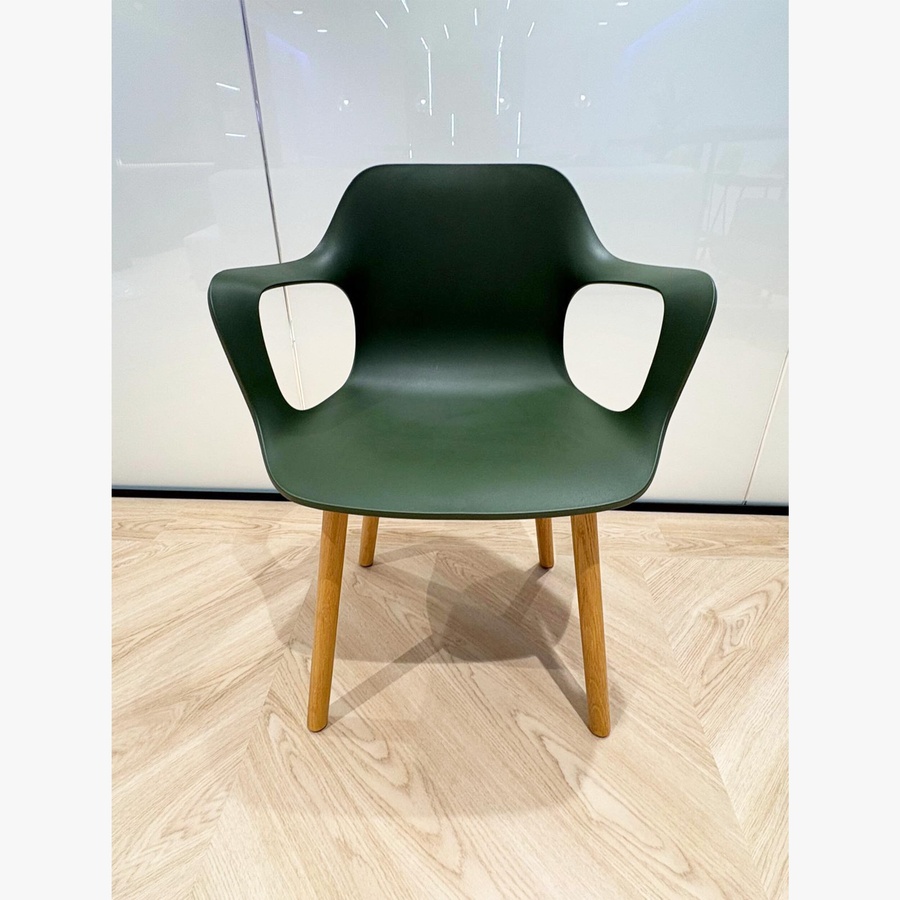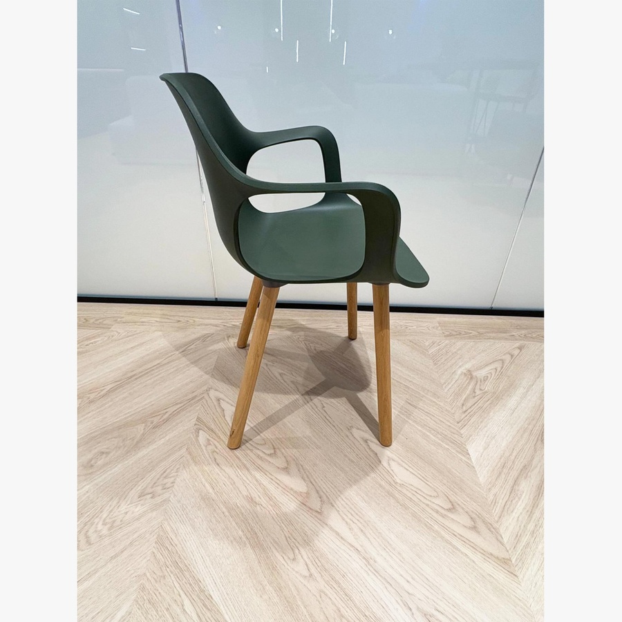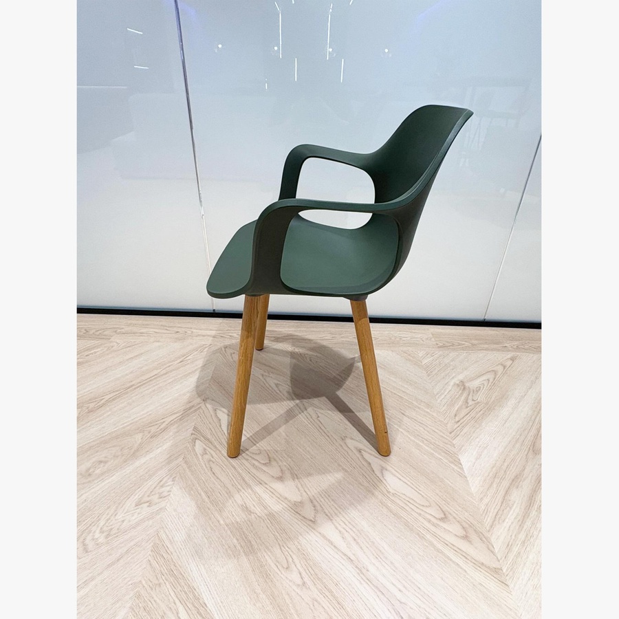 The Vitra HAL Meeting Chair comes with a green finish and wood frame.