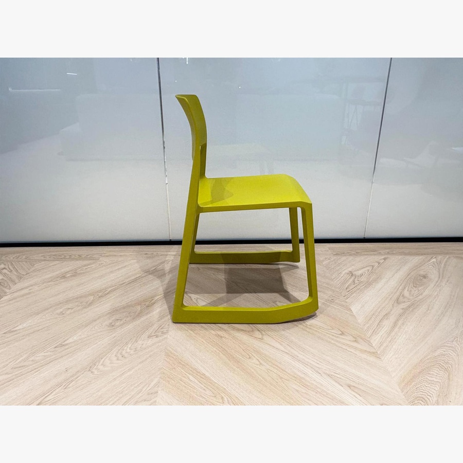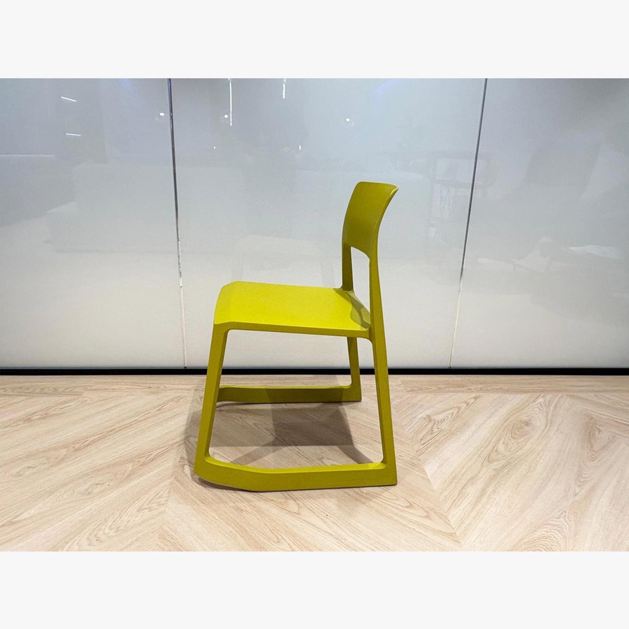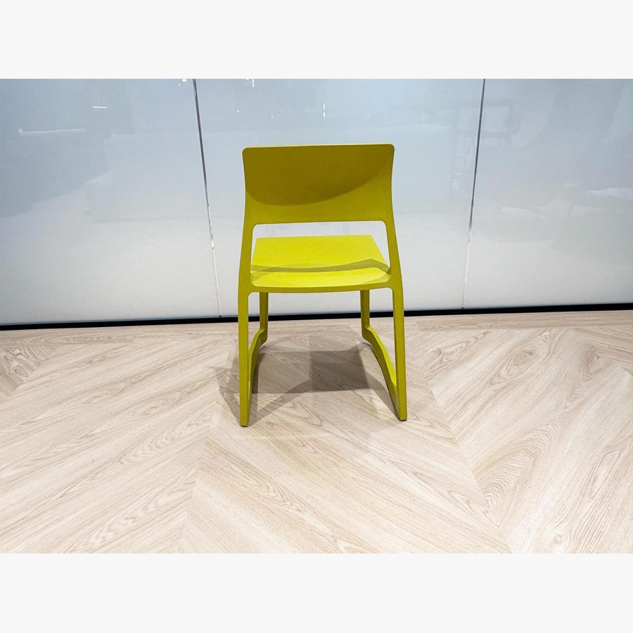 The Vitra Tip Top Stackable Chair comes with a yellow finish.